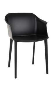 Stabilność siedzenia zapewnia odpowiednio wyprofilowana podstawa z plastikowymi nóżkami. Dzięki czarnej barwie znakomicie dopełnia tapicerowany „kubełek" krzesła.